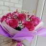 Прелестная флористическая композиция «Теплая встреча» состоит из розовых полураспустившихся бутонов и утонченной зелени. Душевный и весьма органичный вид букету придают насыщенный оттенок роз и не менее прекрасная упаковка из тонкой бумаги в нежно-фиолетовом цвете с дополнением струящейся шелковой ленты.
